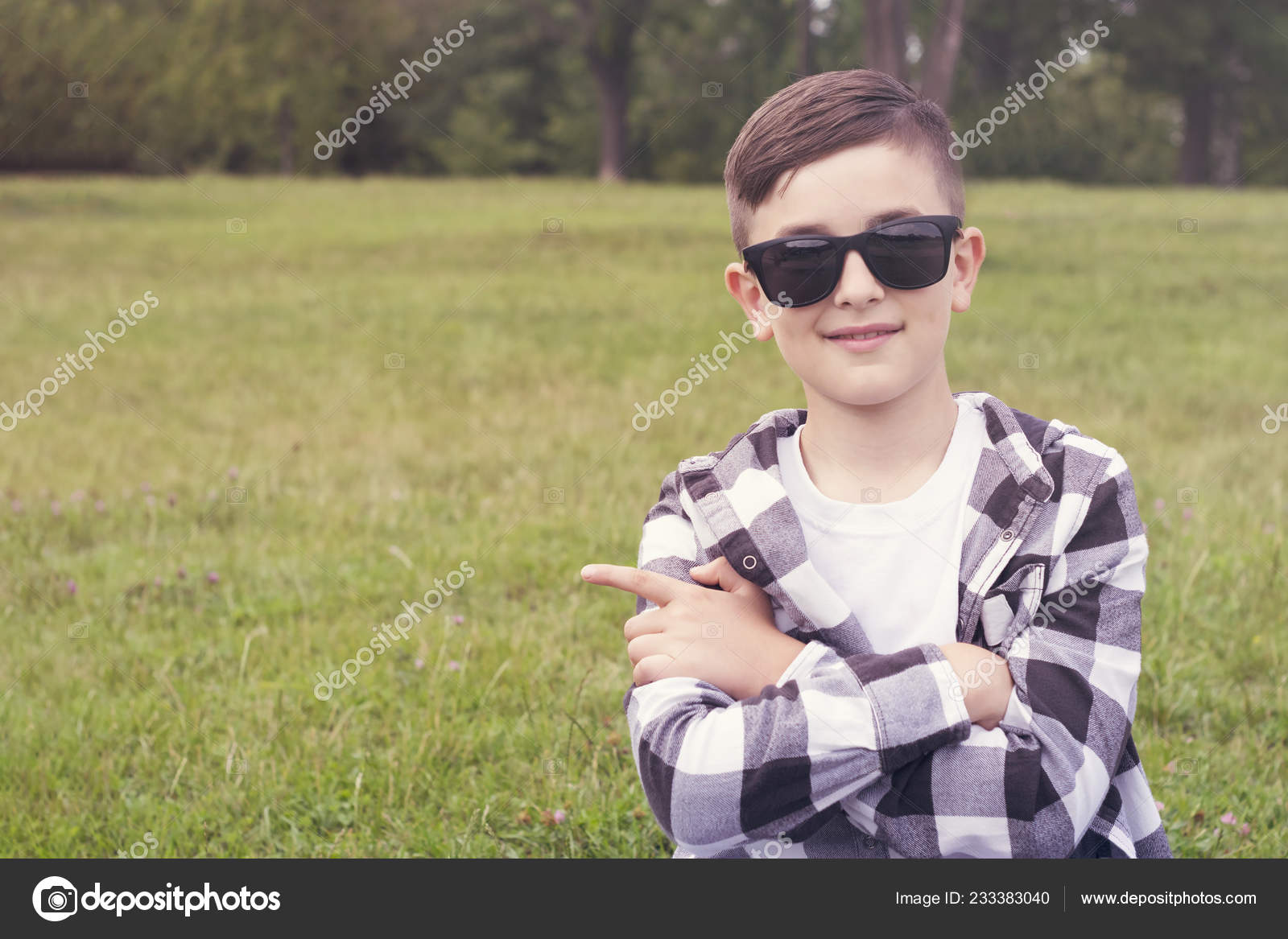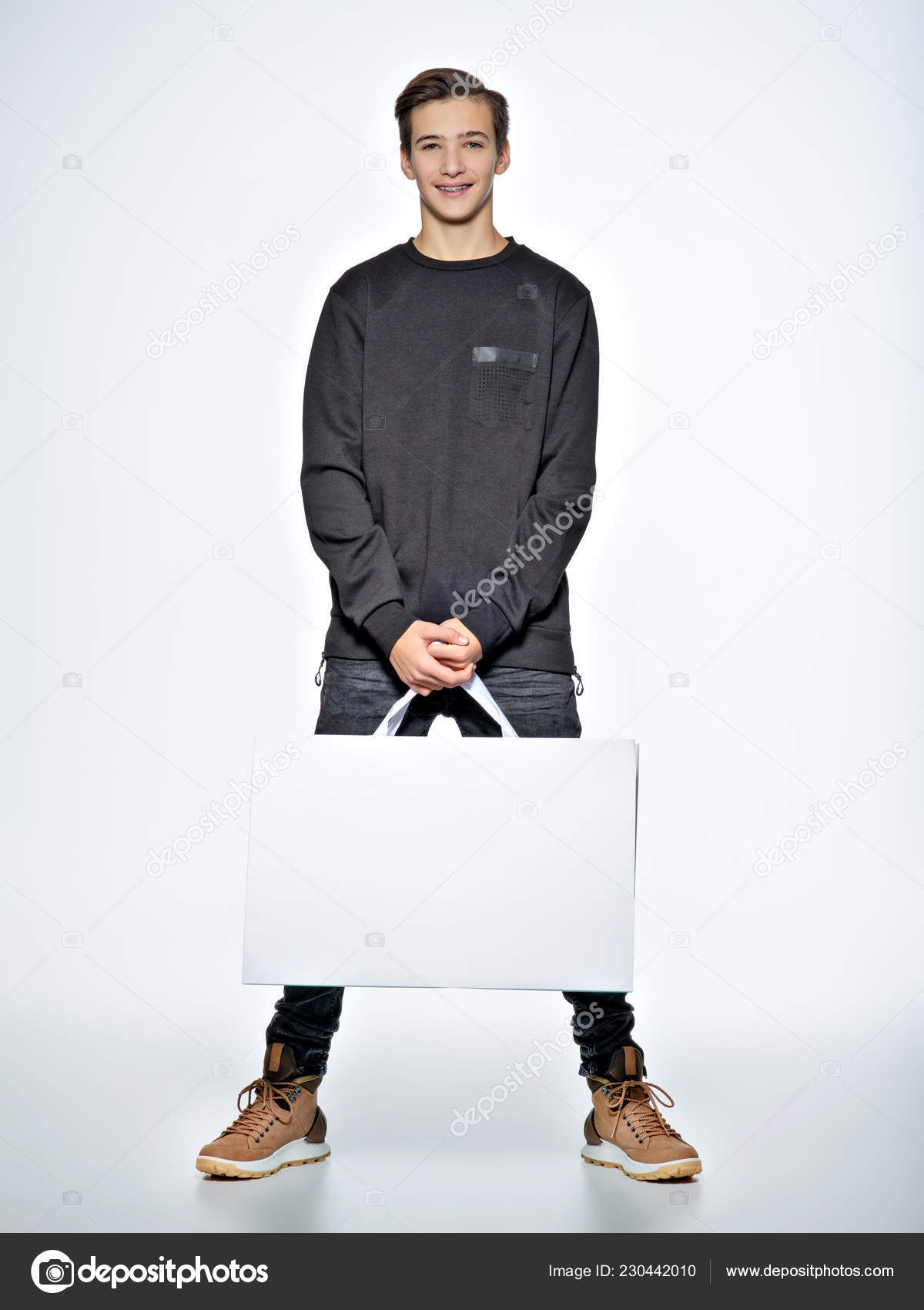 Stylish Kid Boy 14 16 Year Old Wearing Trendy Clothes Holding