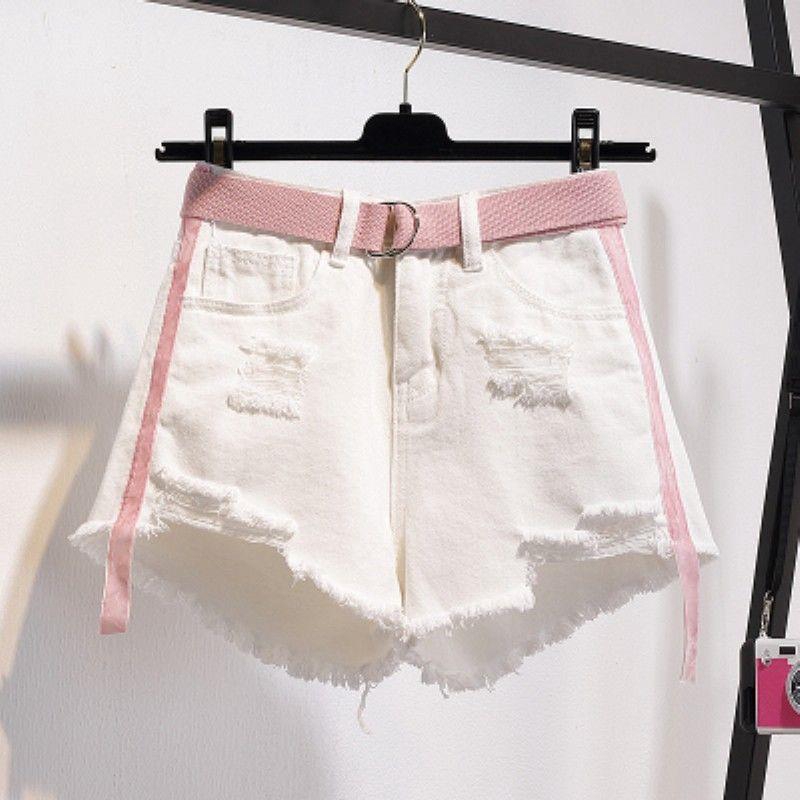 Trendy Denim Shorts 2019 New White Hole Shorts Female Xia