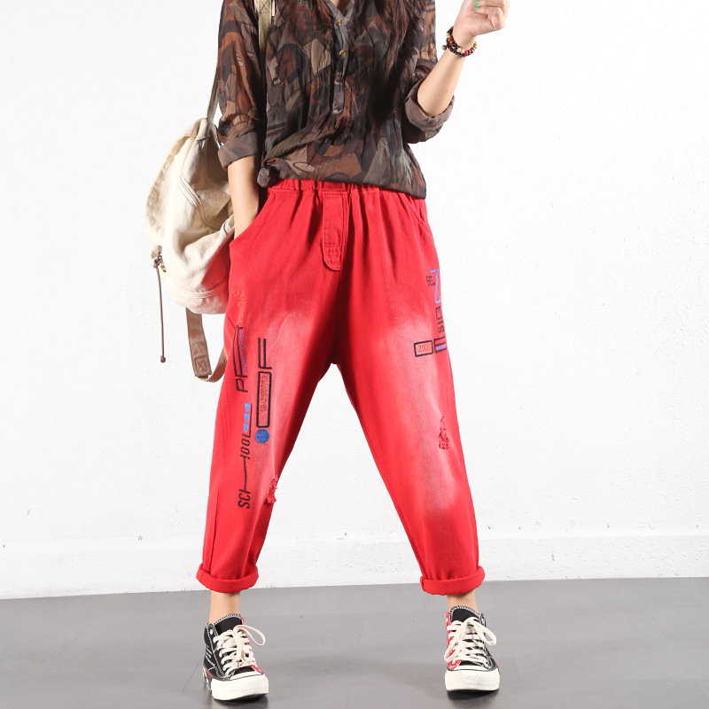 Buy Plus Size Korean Style Trendy Letter Embroidered Casual Pants