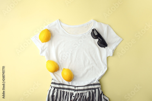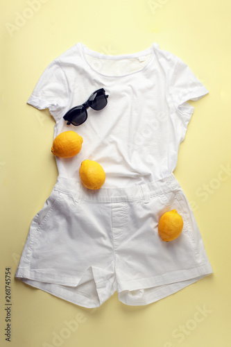 White Shirt Sunglasses And Lemons On Yellow Background Women S