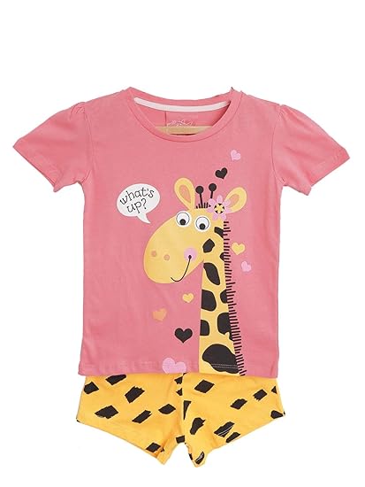 Lazy Shark Girls Magenta And Yellow Printed T Shirt With Shorts