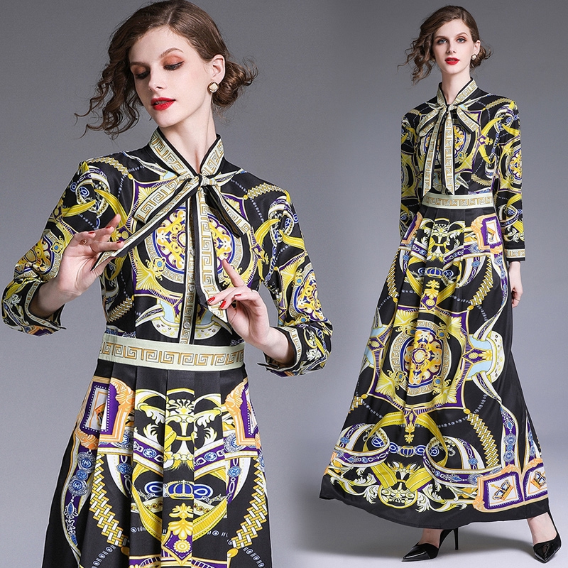 Fashion Female Retro Style Dress Long Maxi A Line Dress Shopee