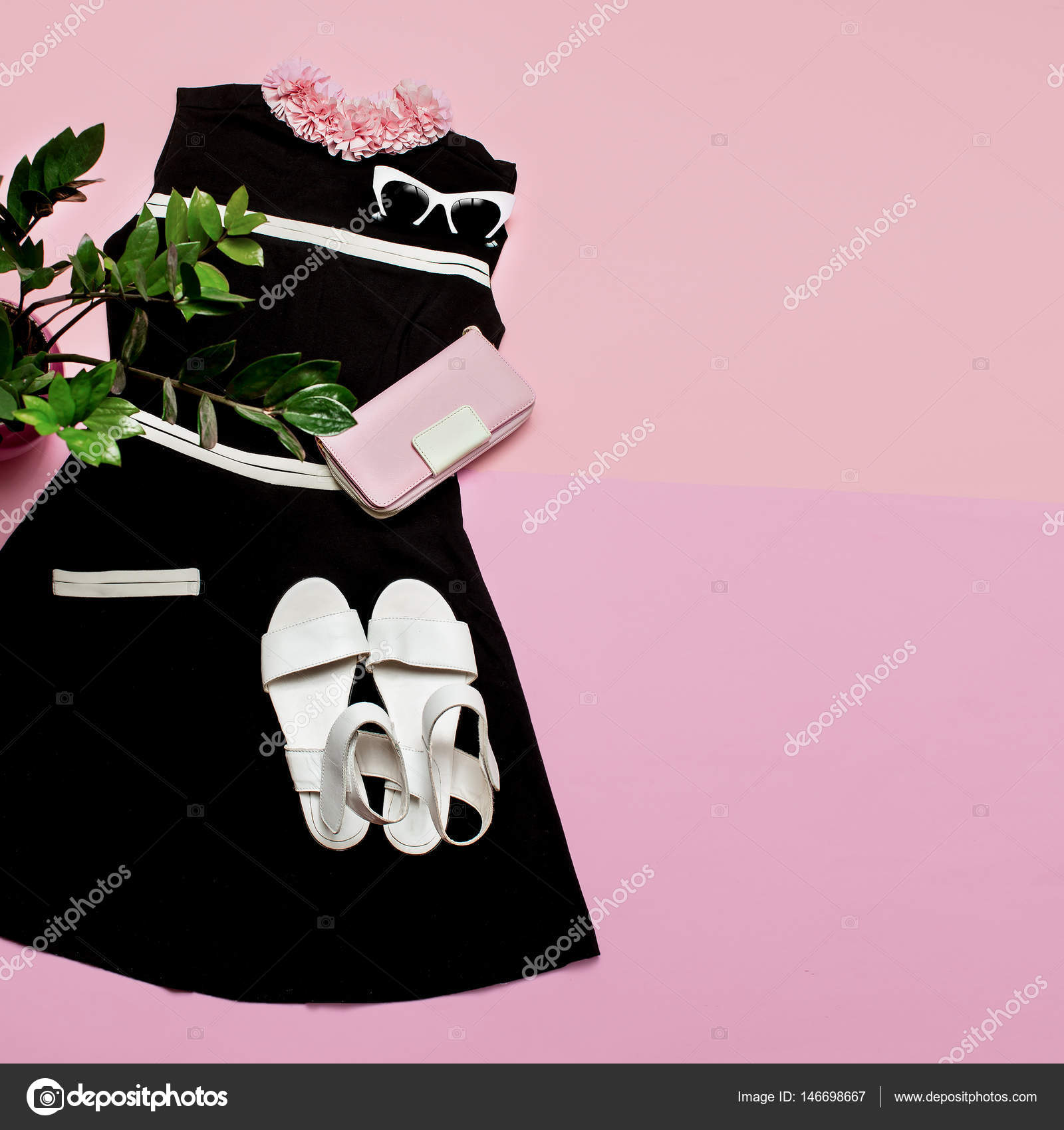Stylish Female Clothes Set Retro Dress And Accessories Vintage