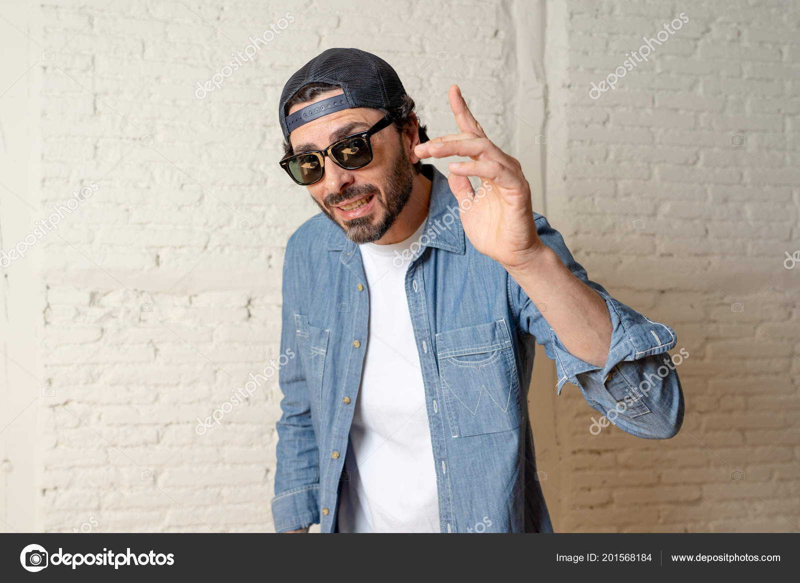 Young Attractive Hipster Trendy Man Posing Cool Attitude Dressing