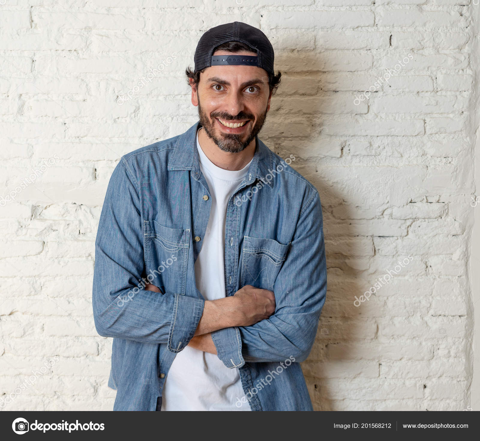 Young Attractive Hipster Trendy Style Looking Man Smiling Happy