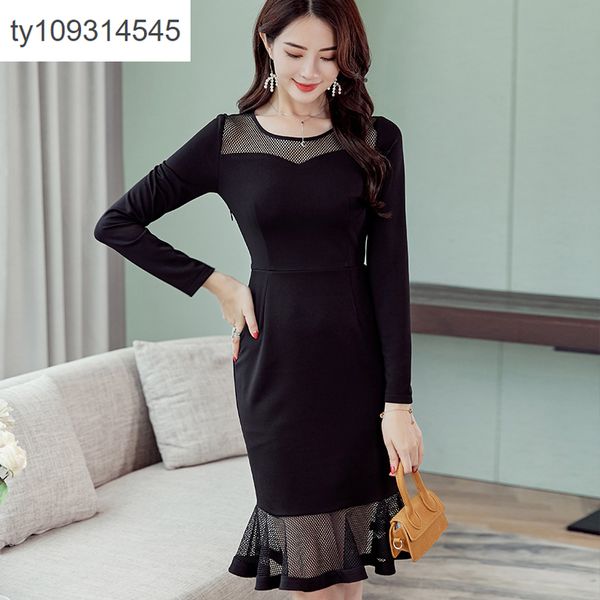 Buy Lycka Lf7452 Korean Style Autumn Slim A Line Dress Black