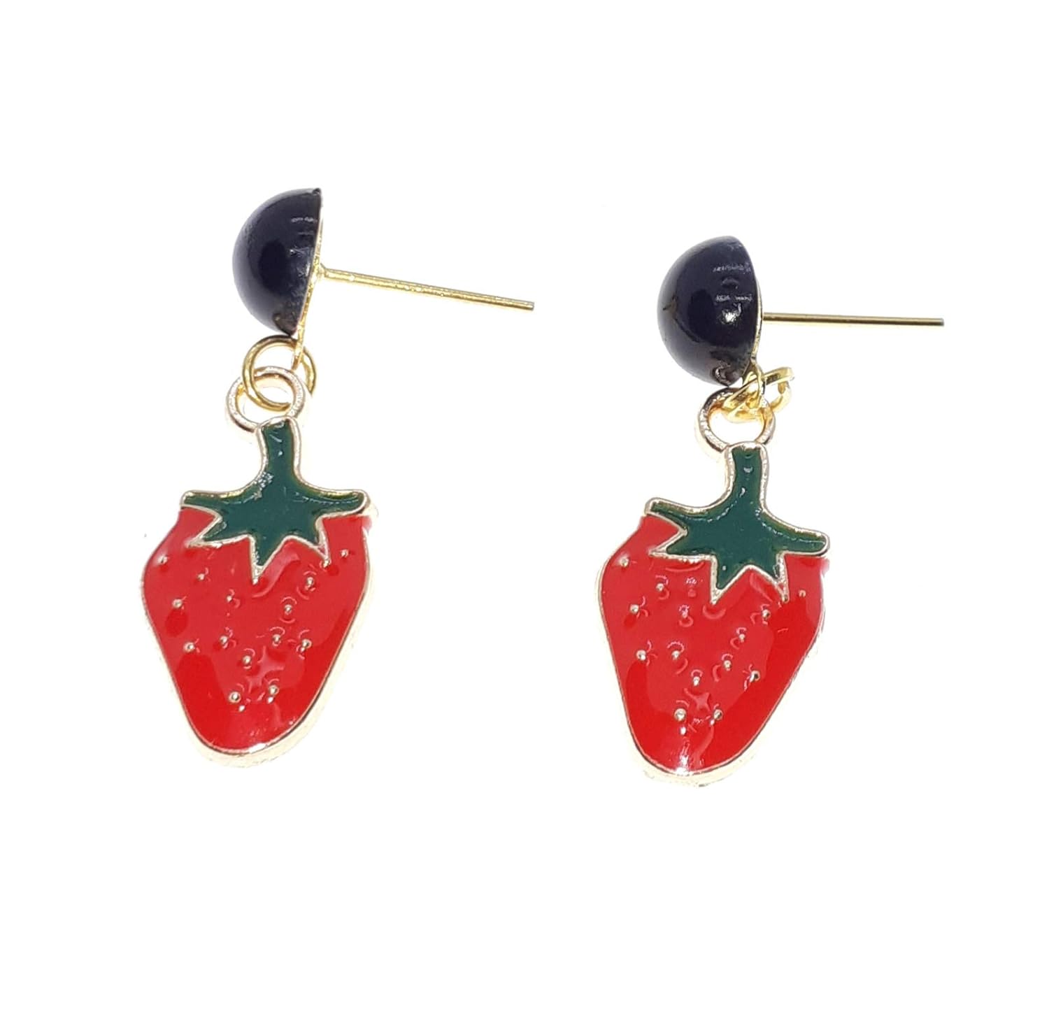 Buy Ej Korean Very Small Earrings Strawberry Gold Enamel Trendy
