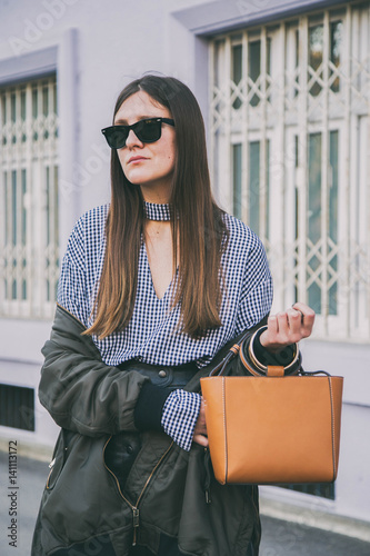 Fashion Blogger Street Style Fashionable Woman Posing Wearing An