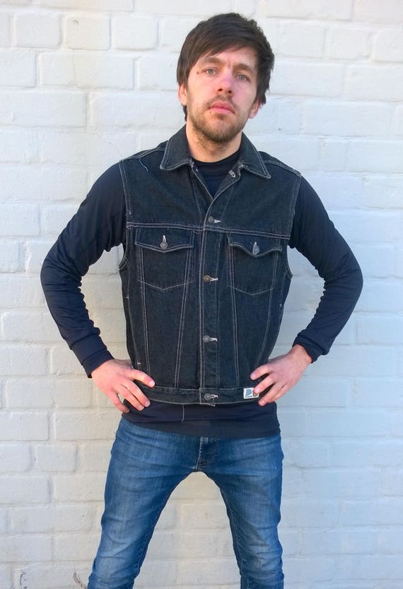 Vintage Denim Vest Denim Waistcoat Black Denim Vest Mens Etsy