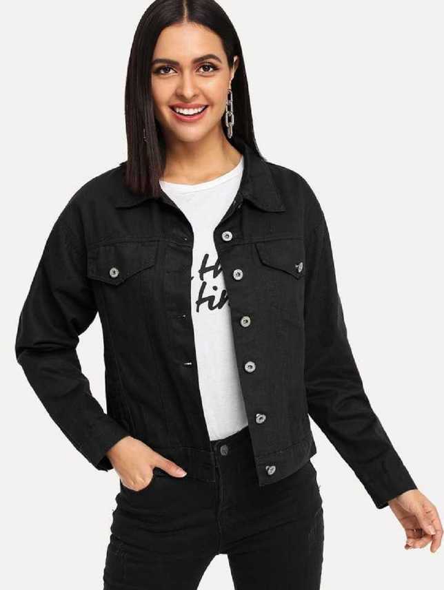 Pour Femme Full Sleeve Stylish Black Denim Jacket