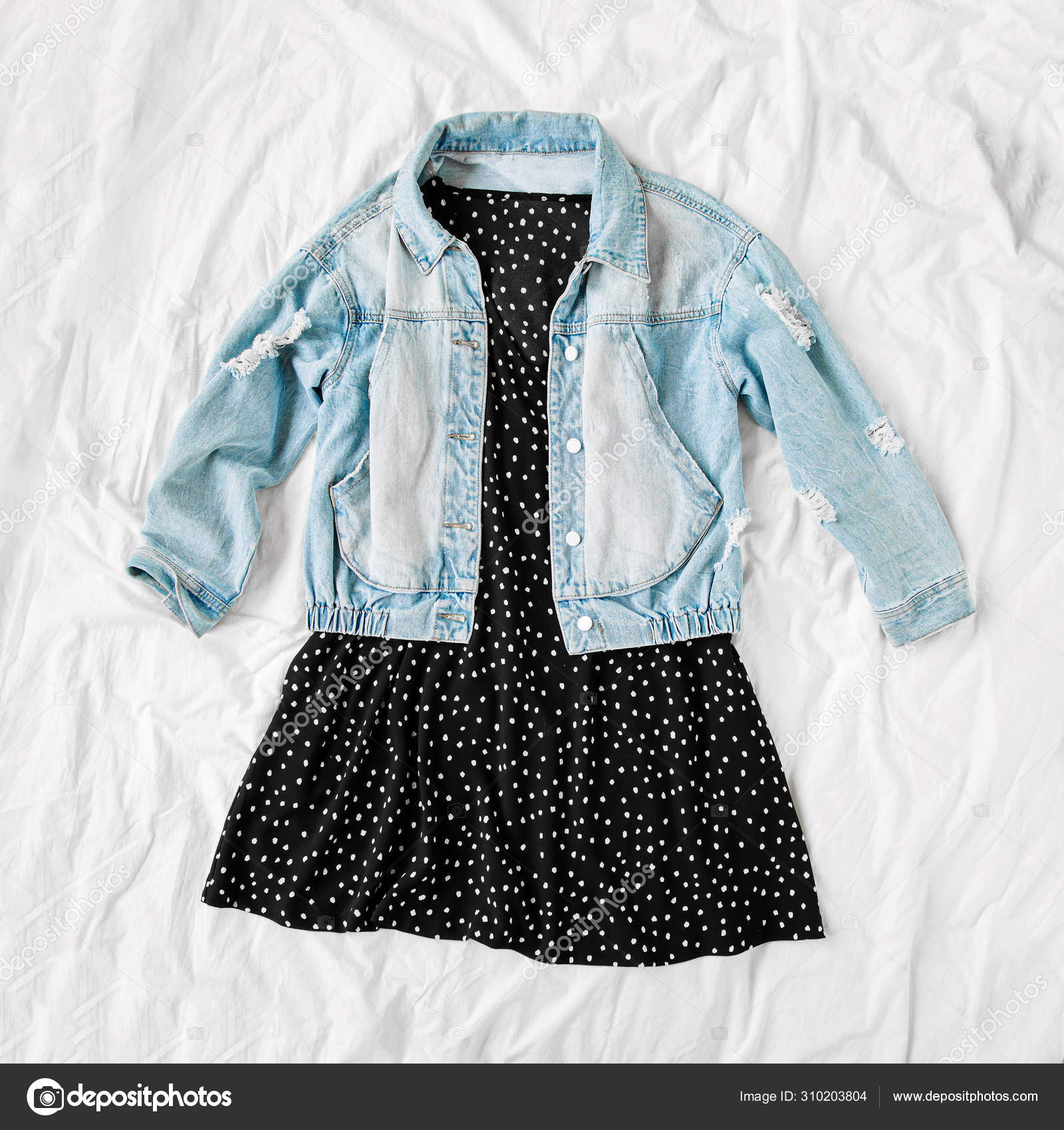 Blue Jean Jacket Black Dress White Bed Women Stylish Autumn