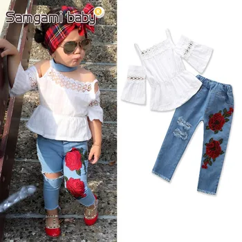 New Style Summer Clothes Set Kid Baby Girl White Lace Off Shoulder