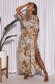How It Is Ivory Tropical Print Pants Maxi Dress With Sleeves